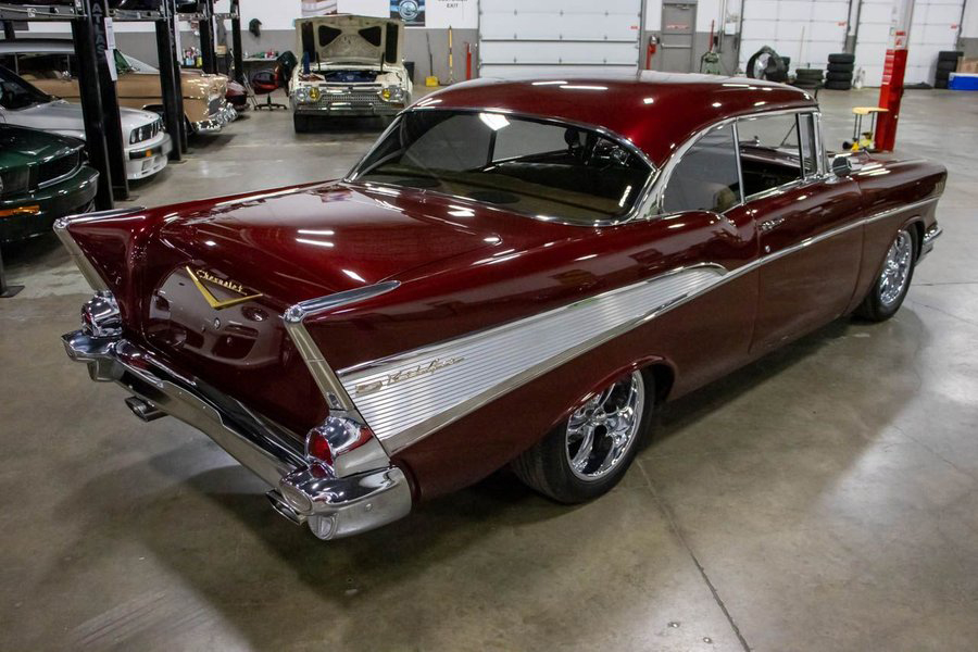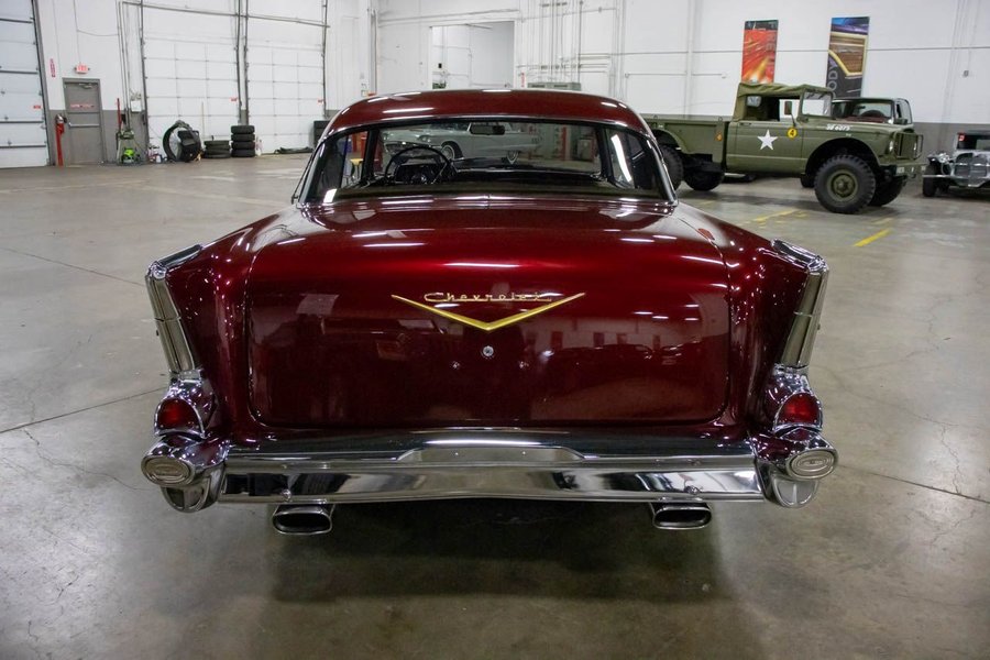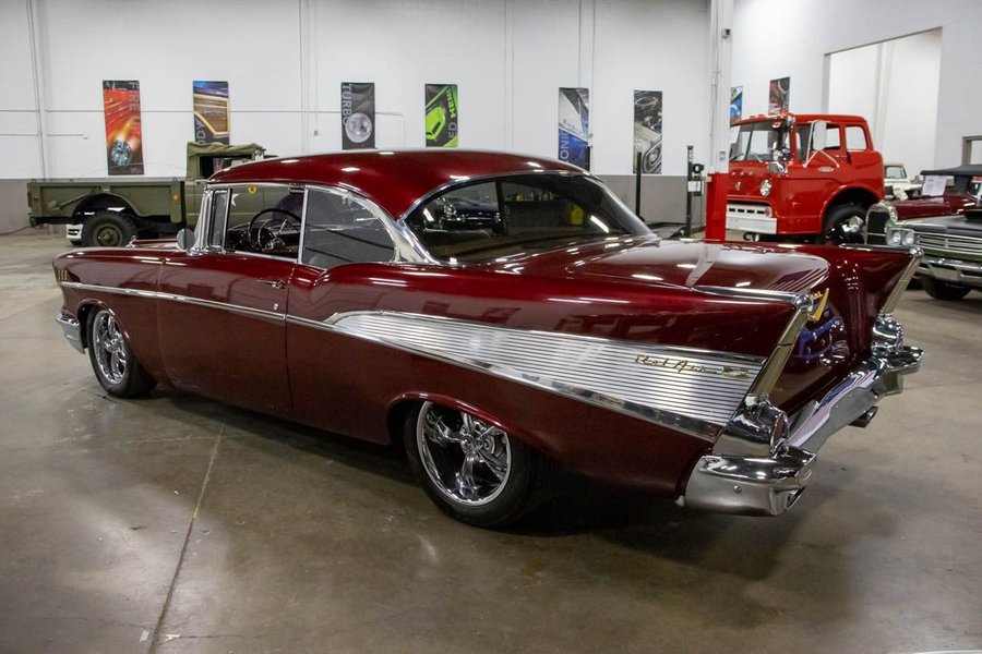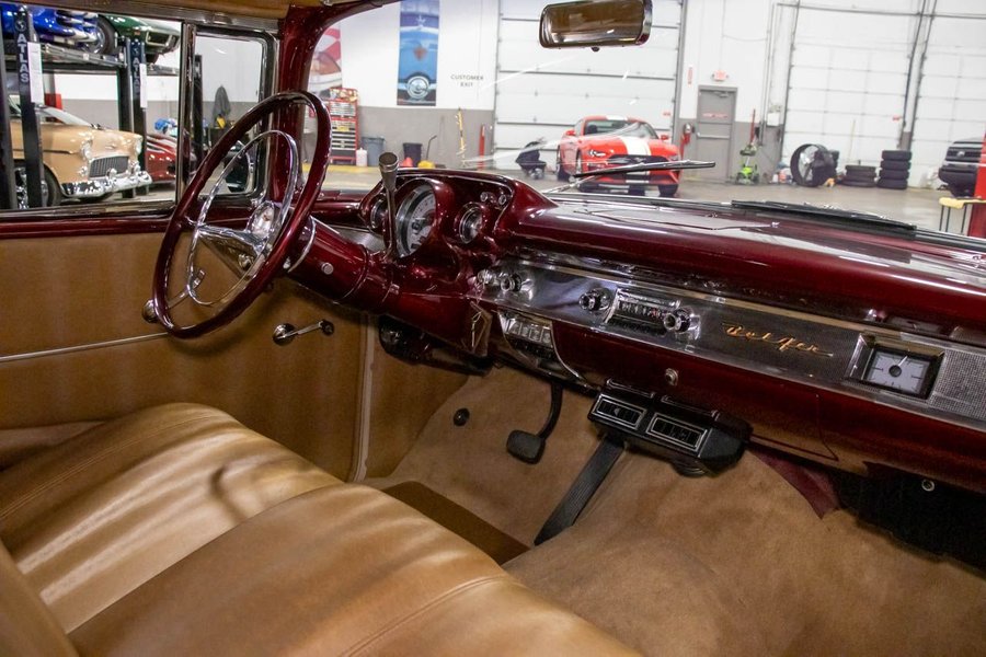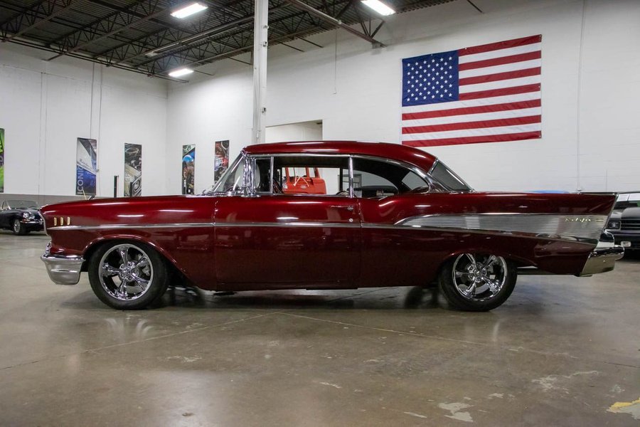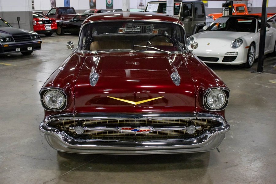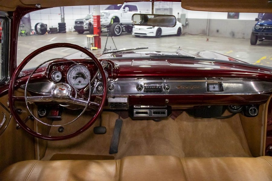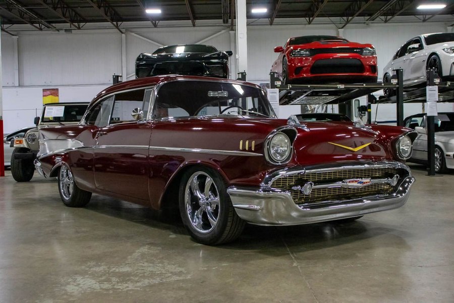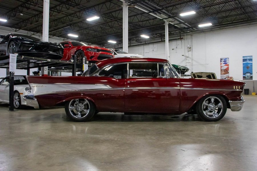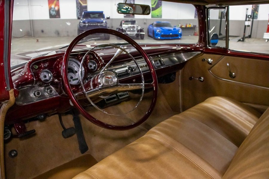 This Bel Air comes suiting a Maroon exterior over an immaculate Saddle Brown interior. Powering this beautiful '57 Chev is a 383ci V8 engine making 425hp paired with a smooth-shifting TH350 automatic transmission with a 12 bolt rear end. This vehicle comes with some great features such as; power disc brakes, power steering, Dakota gauges, Vintage air, coilovers, 4-link rear suspension, and more!