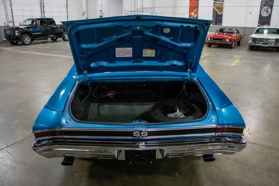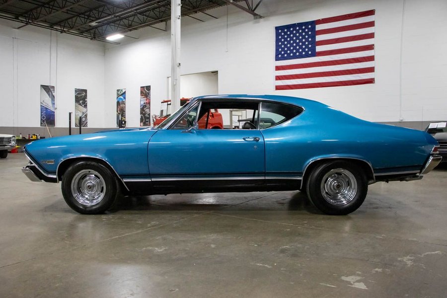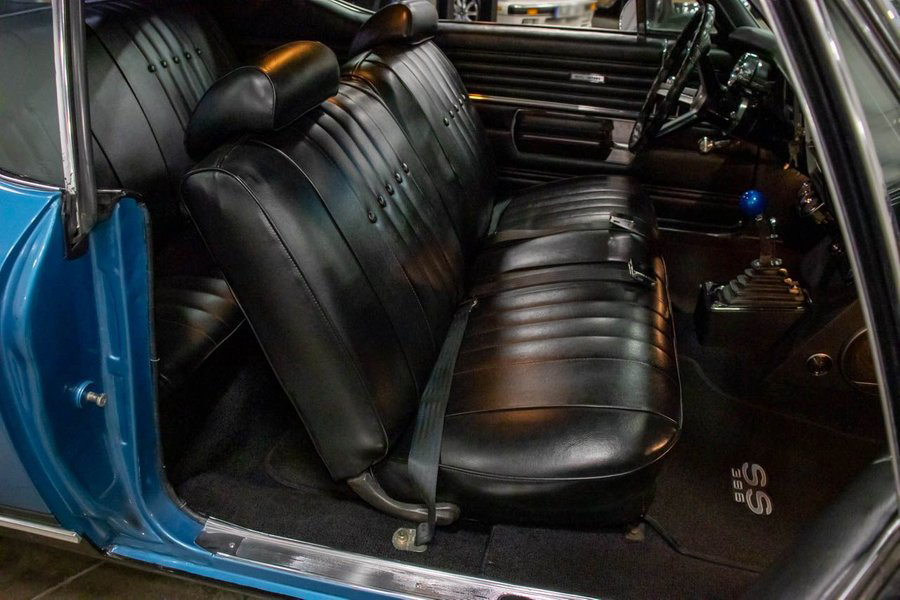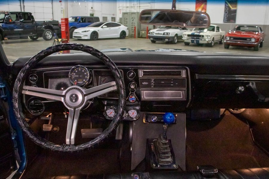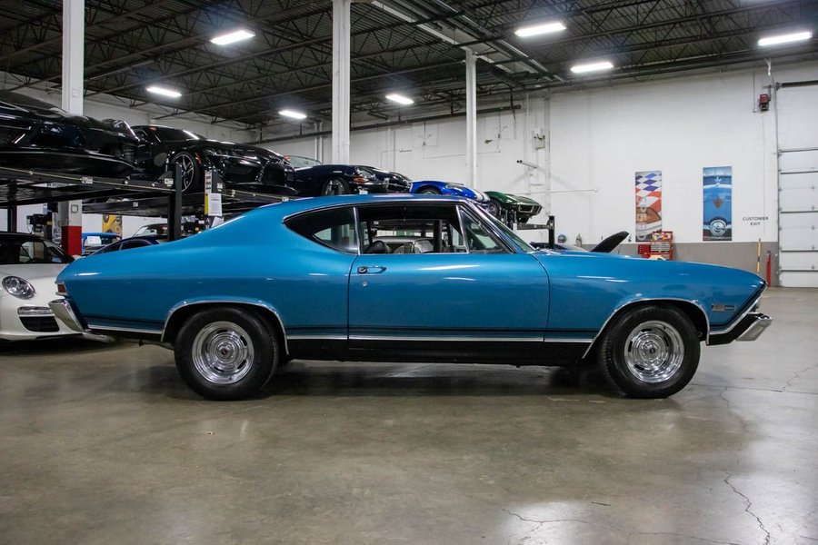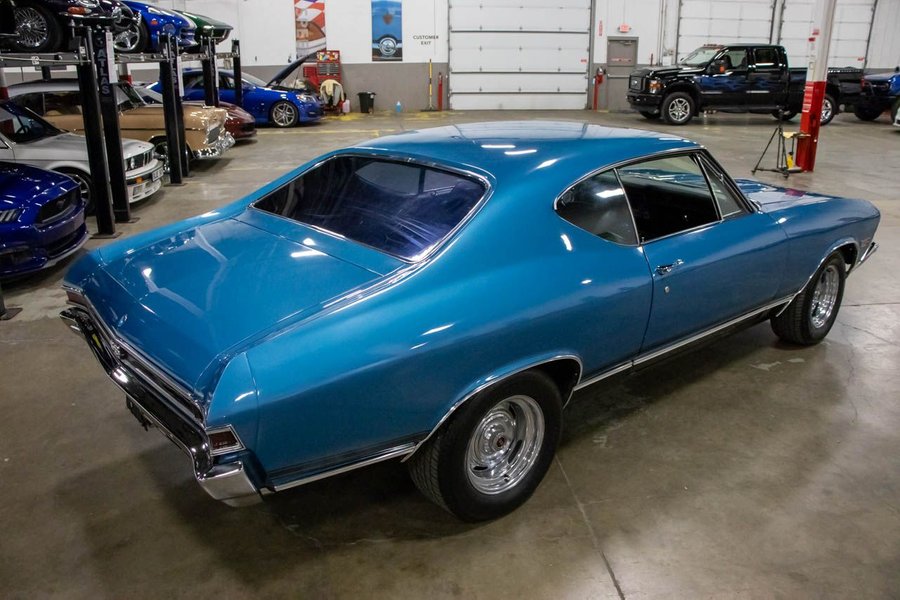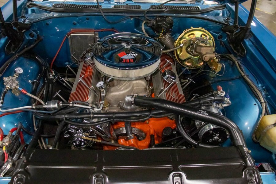 This Chevelle comes with a nice Blue exterior paint over a clean Black interior. Powering this classic Chevy is a 396ci V8 paired with an automatic transmission. This Chevelle comes with some nice features such as; power steering, power brakes, front disc brakes with a new brake booster, Edelbrock intake, slap shifter, Sunpro gauges, an aftermarket Pioneer radio with speakers, Vintage Air, and extra chrome valve covers.