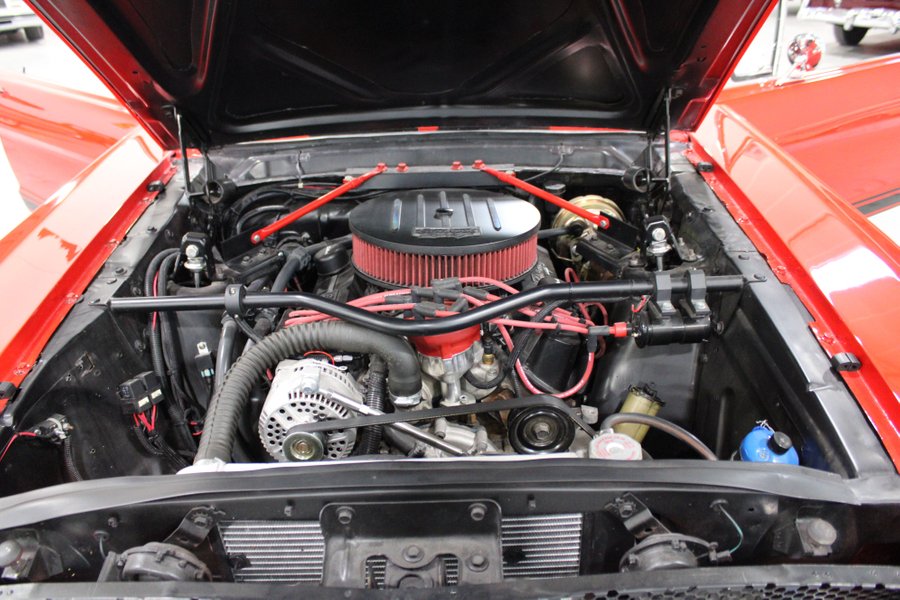 This head-turning classic comes in a Rangoon Red paint job complemented by a clean black interior. Powering the Mustang is a 5.0 Liter V8 mated to a smooth-shifting 5-speed manual transmission. This Mustang comes with some nice features such as; racing seats, manual windows, aftermarket digital gauges, Hurst shifter, Electronic Fuel Injection, Edelbrock EFI intake, Edelbrock Racing valve covers and air cleaner, and 4 wheel power disc brakes. Early generation Mustangs are getting harder to find, and this one is a great Hot Rod with all the cool tricks. If you're looking for a clean Fastback, this is the one for you. Drive this one out of our showroom or have us assist with shipping it to you anywhere in the United States! Don't hesitate to give us a call with any questions or for more information.