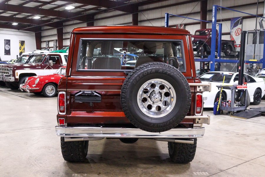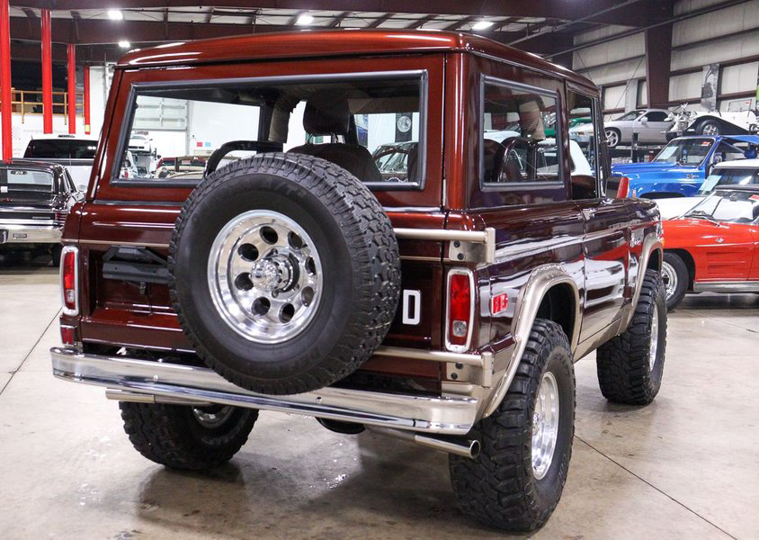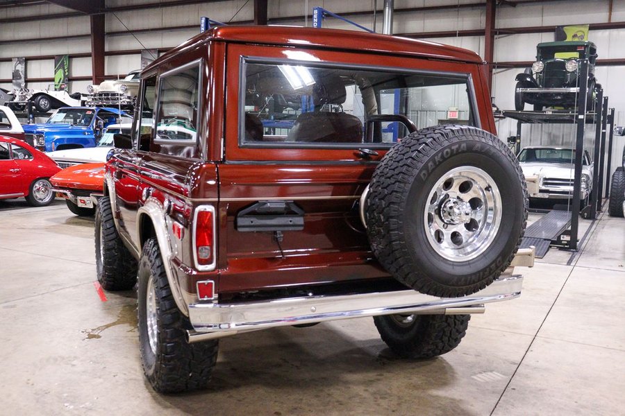 The Bronco offered here is powered by a healthy 302 V8 paired with a 3 speed manual transmission with a Hurst shifter. It rides on 15 inch alloy wheels with new 33x12.5 tires. Highlights include dual exhaust, dual tanks, nice chrome, CD player, power brakes and power steering, roll bar, rear spare tire, tachometer and wood steering wheel.